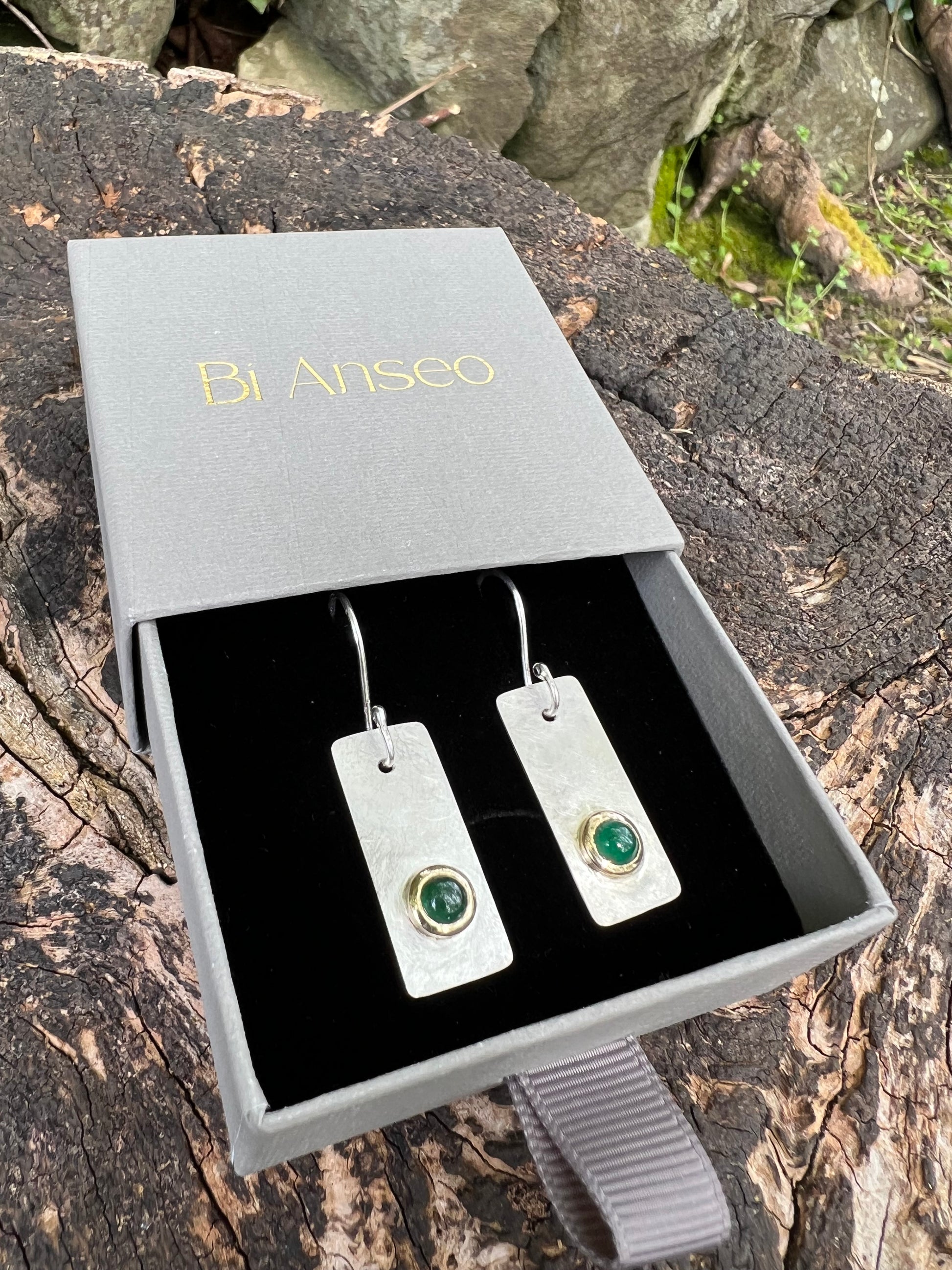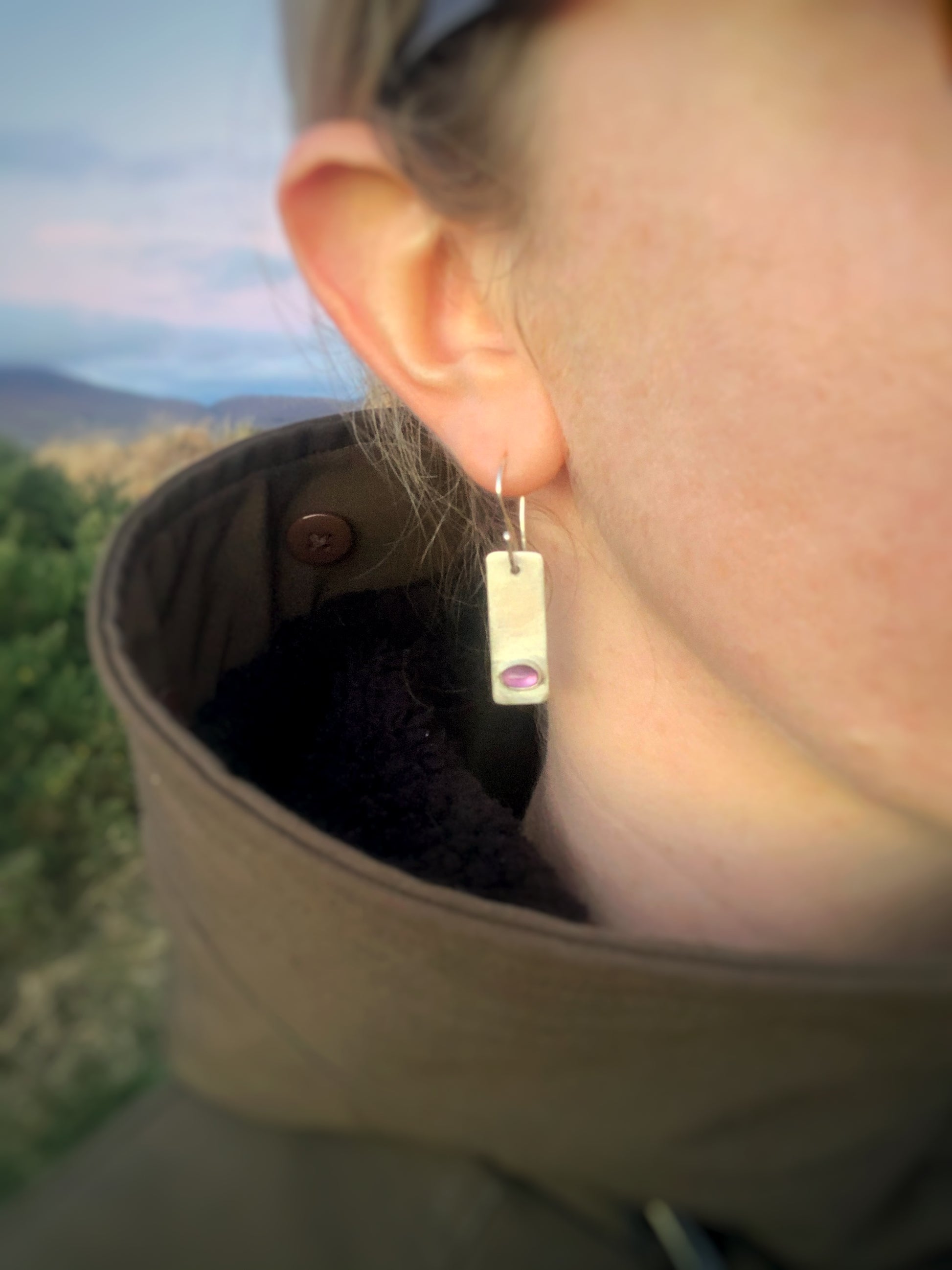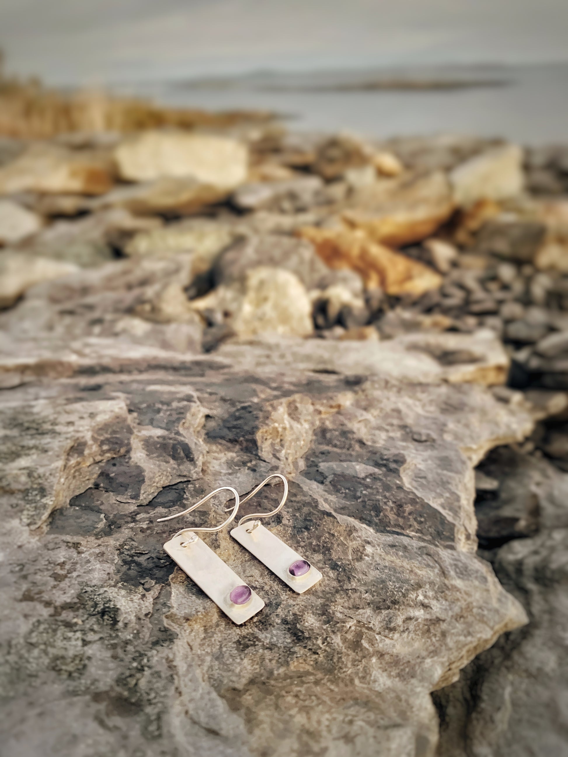 Set here with Amethyst, Moonstone and as part of a commission with Emerald and 9 karat gold, you can customise these earrings with a birthstone or precious gemstone of your choice. To select Amethyst, add to cart and check out. For any other gemstone, email me at hello@bianseo.ie. We can chat about your choice and confirm the order from there. Some precious gemstones will mean a price increase. This will be clearly explained before an order is placed.