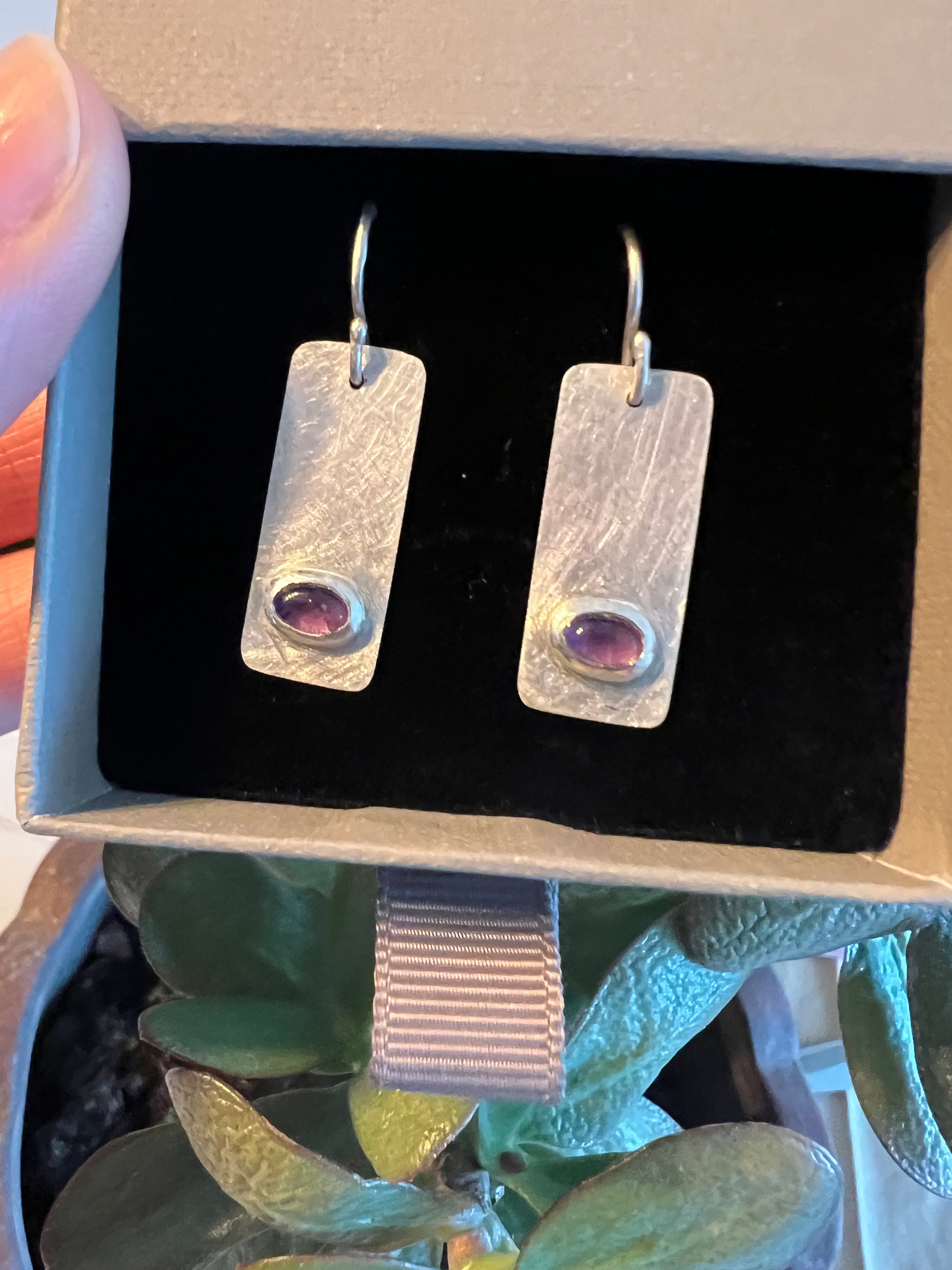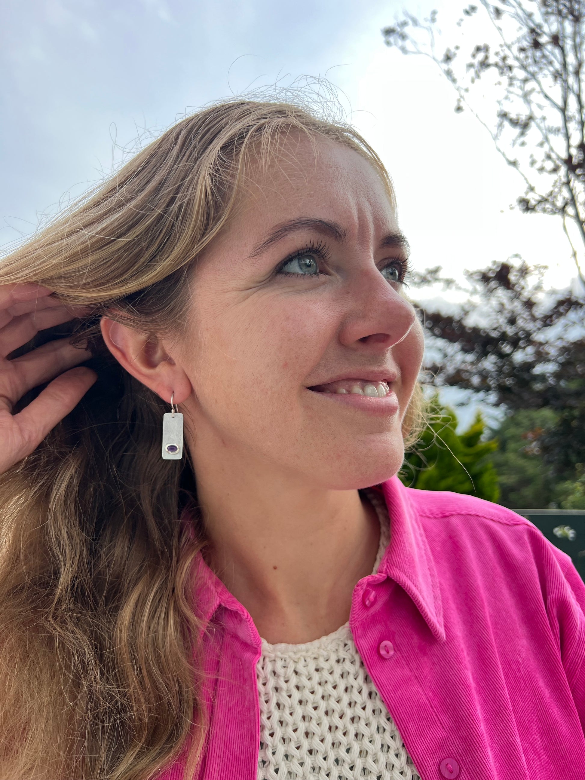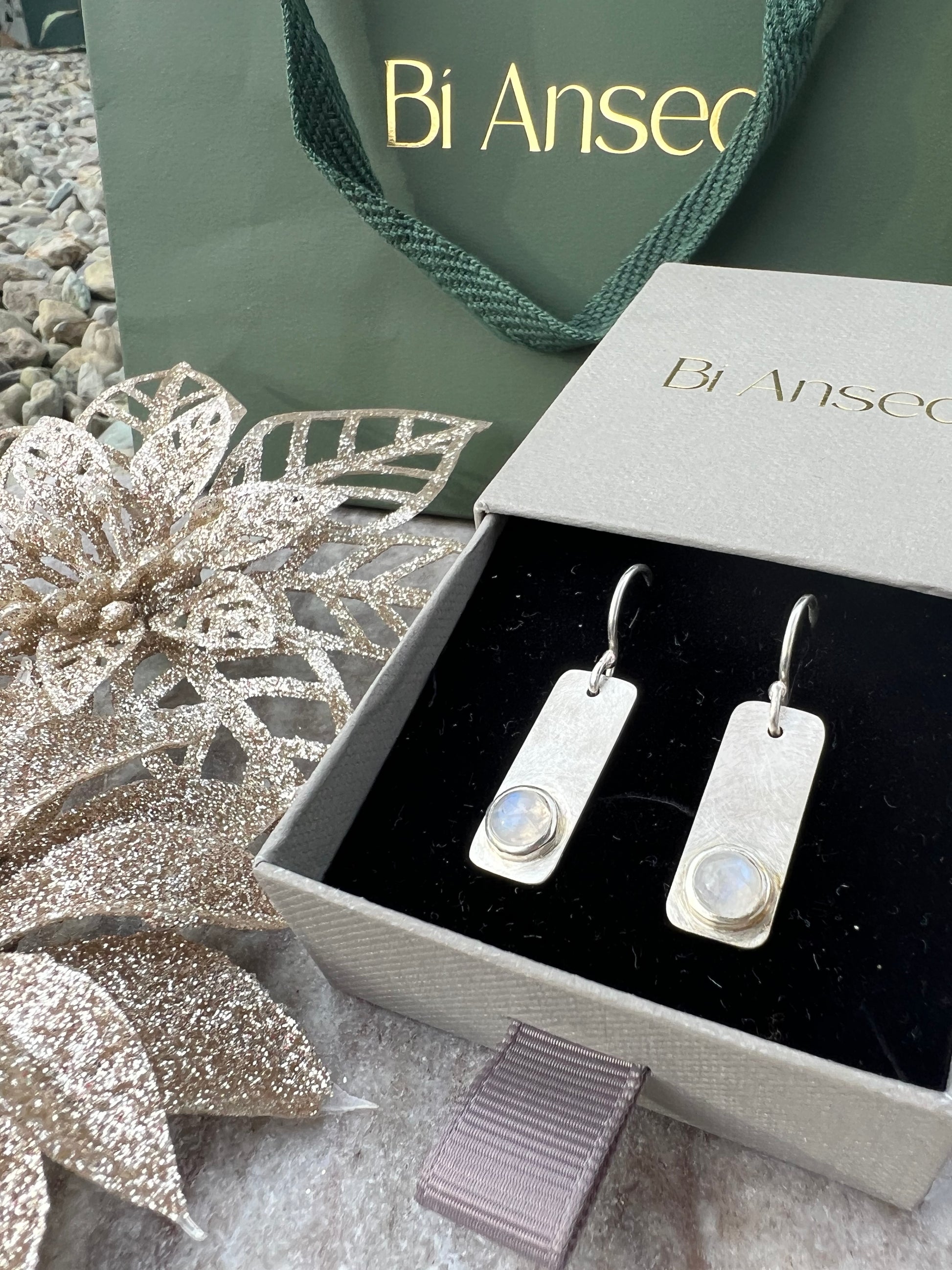 Set here with Amethyst, Moonstone and as part of a commission with Emerald and 9 karat gold, you can customise these earrings with a birthstone or precious gemstone of your choice. To select Amethyst, add to cart and check out. For any other gemstone, email me at hello@bianseo.ie. We can chat about your choice and confirm the order from there. Some precious gemstones will mean a price increase. This will be clearly explained before an order is placed.